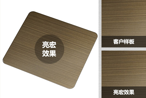 佛山市陳村鎮(zhèn)是亞洲盛名遠(yuǎn)揚(yáng)的不銹鋼生產(chǎn)貿(mào)易重鎮(zhèn)。佛山市亮宏不銹鋼有限公司 一家占地達(dá)3千平方米,擁有最先進(jìn)的生產(chǎn)設(shè)備和最完善快捷服務(wù)的“亮宏”,它 秉承中華民族的傳統(tǒng)美德,老老實(shí)實(shí)做人,踏踏實(shí)實(shí)做事,以“用戶至上,信譽(yù)第一 誠信經(jīng)營”為經(jīng)營理念,以最大限度地滿足用戶需求為目標(biāo)。我廠生產(chǎn)的產(chǎn)品規(guī)格 齊全,款式新穎多樣,廣泛用于豪華門、電梯、家具、公共設(shè)施、天花、走道、外墻 燈箱、包柱、墻幕等建筑裝飾、裝璜中;主導(dǎo)產(chǎn)品“亮王”牌不銹鋼鏡面板、磨砂板 鈦金板、花板、蝕刻板、沖孔板、防滑板等高科技彩色板暢銷全國各地及東南亞地區(qū) “亮王”正以上乘的質(zhì)量,低廉的價(jià)格,熱忱歡迎新老客戶的來人來電洽談!
